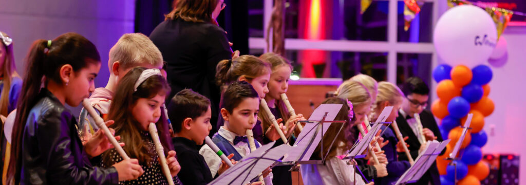 Met Algemene Muzikale Vorming (AMV) maken jonge kinderen alvast kennis met muziek. Ze spelen samen blokfluit, leren de basis van muziek en maken kennis met heel veel muziekinstrumenten. AMV is een korte muziekopleiding voor kinderen vanaf groep 4 (8 jaar). De lessen worden op een speelse manier gegeven, passend bij de leeftijd van het kind. Ritme- en maatgevoel worden ontwikkeld, net als bewegingen, luisteroefeningen en improvisatie. De kinderen worden tijdens de opleiding één of meerdere keren betrokken bij een concert en kunnen zo het geleerde presenteren. Er is altijd een afsluitend concert waarbij de kinderen een diploma krijgen.